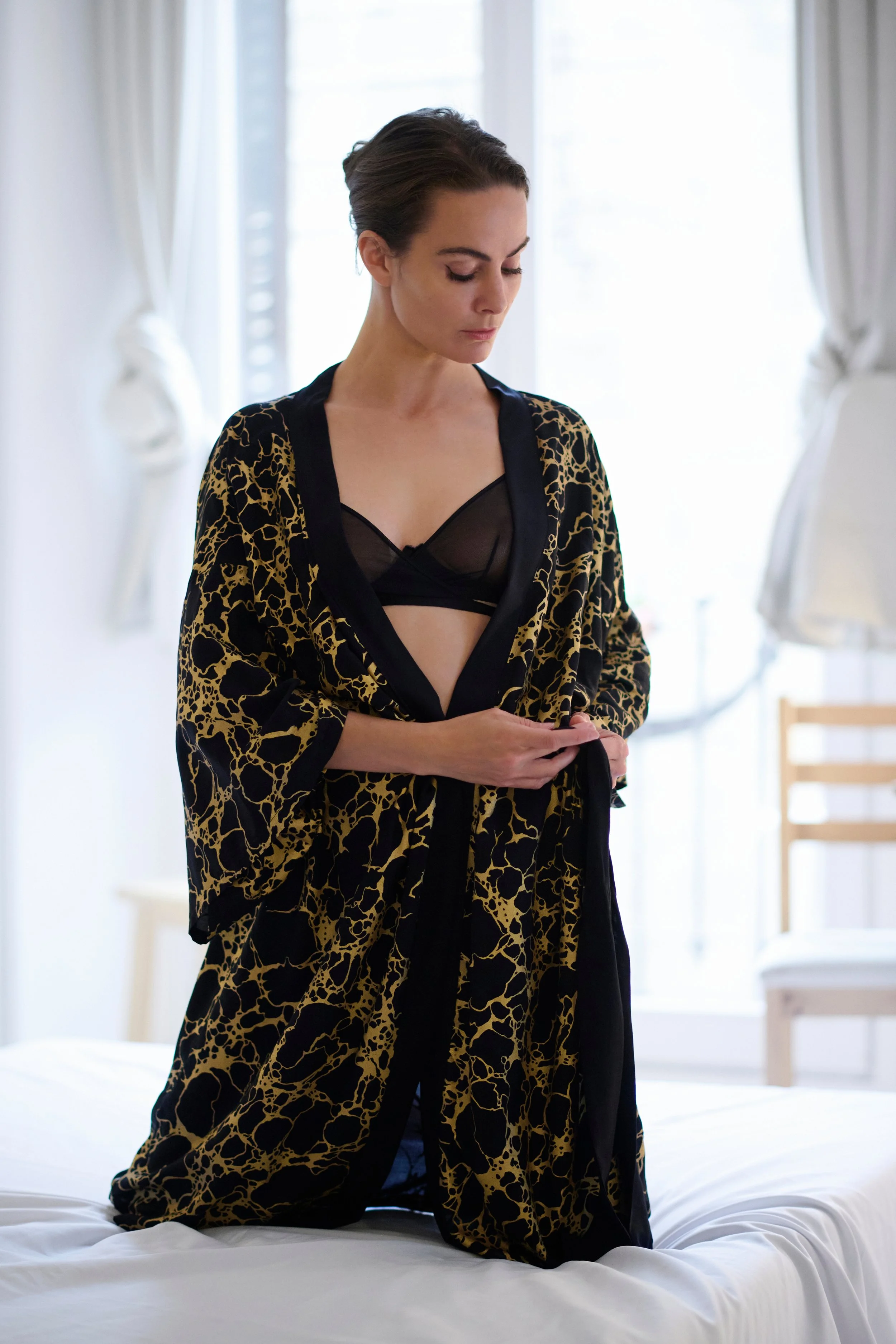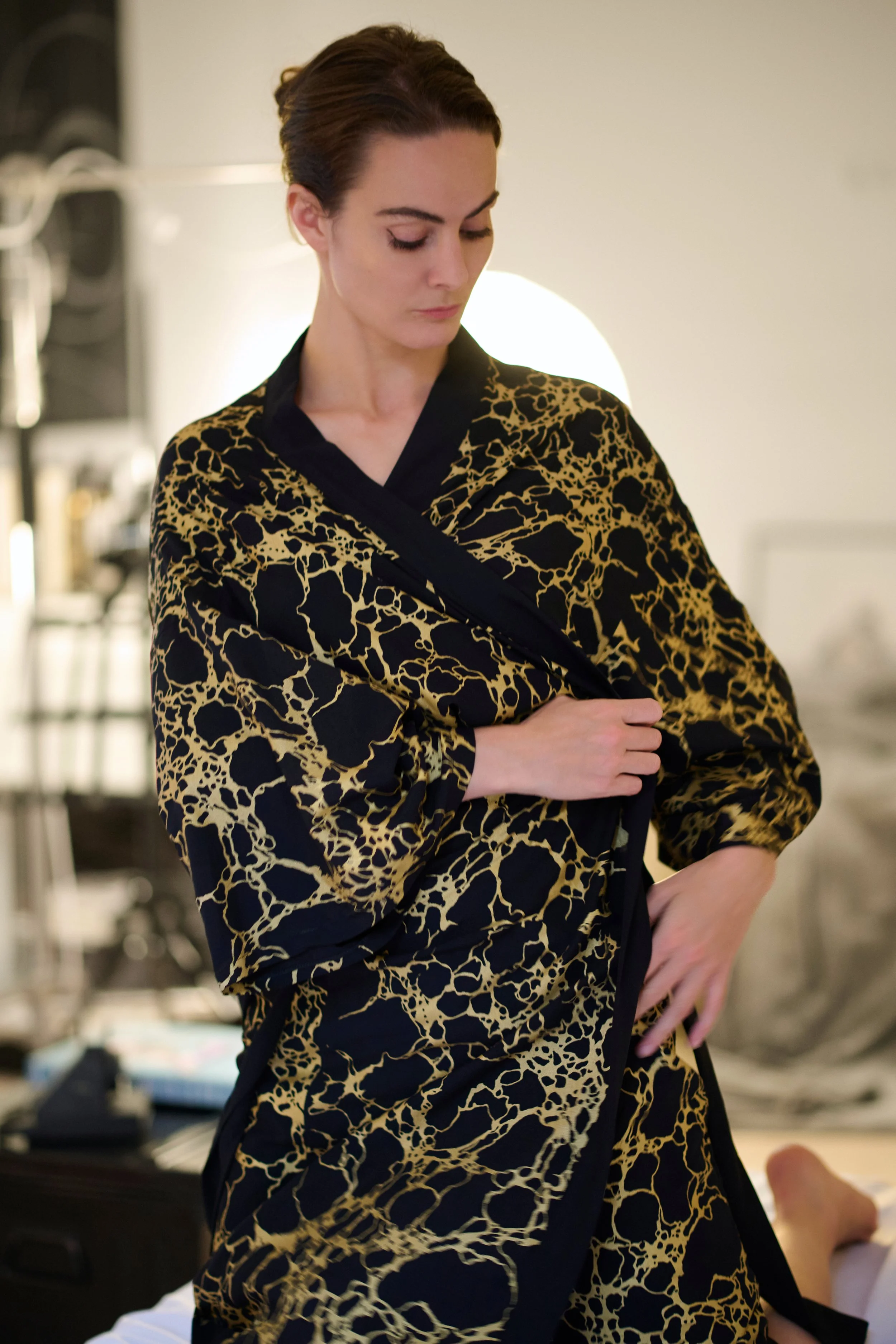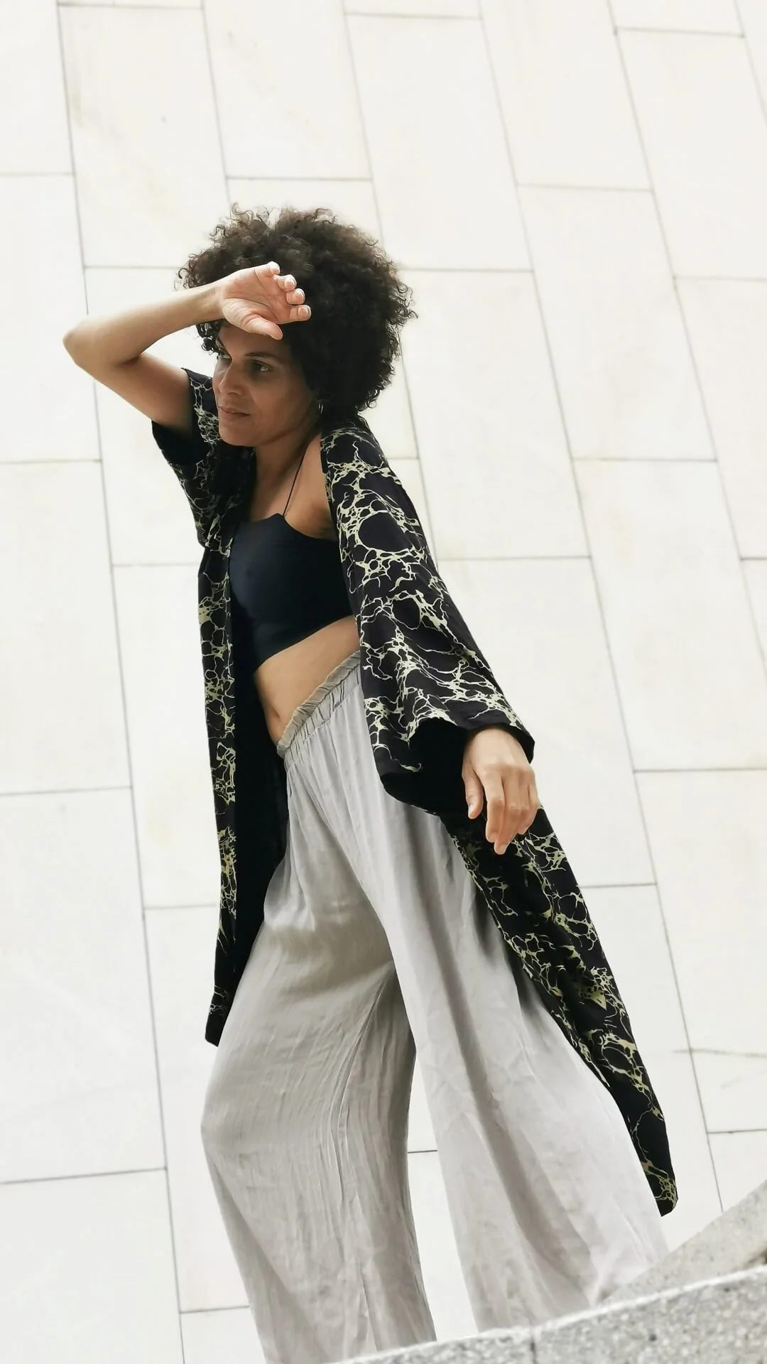 Each Nebula Lab kimono is a handmade work of art, telling a story through designed patterns, vibrant colors, and thoughtful details. More than just a garment, it’s a luxury piece that celebrates individuality, expresses personal style, and showcases the artistry and craftsmanship of sustainable, artisanal fashion. Every fabric is screen-printed and made to order especially for you.